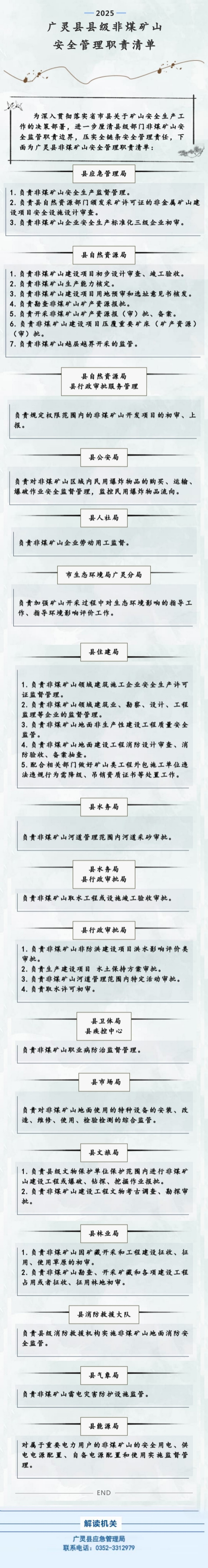 【圖解】廣靈縣人民政府辦公室關于印發廣靈縣縣級非煤礦山安全管理職責清單的通知