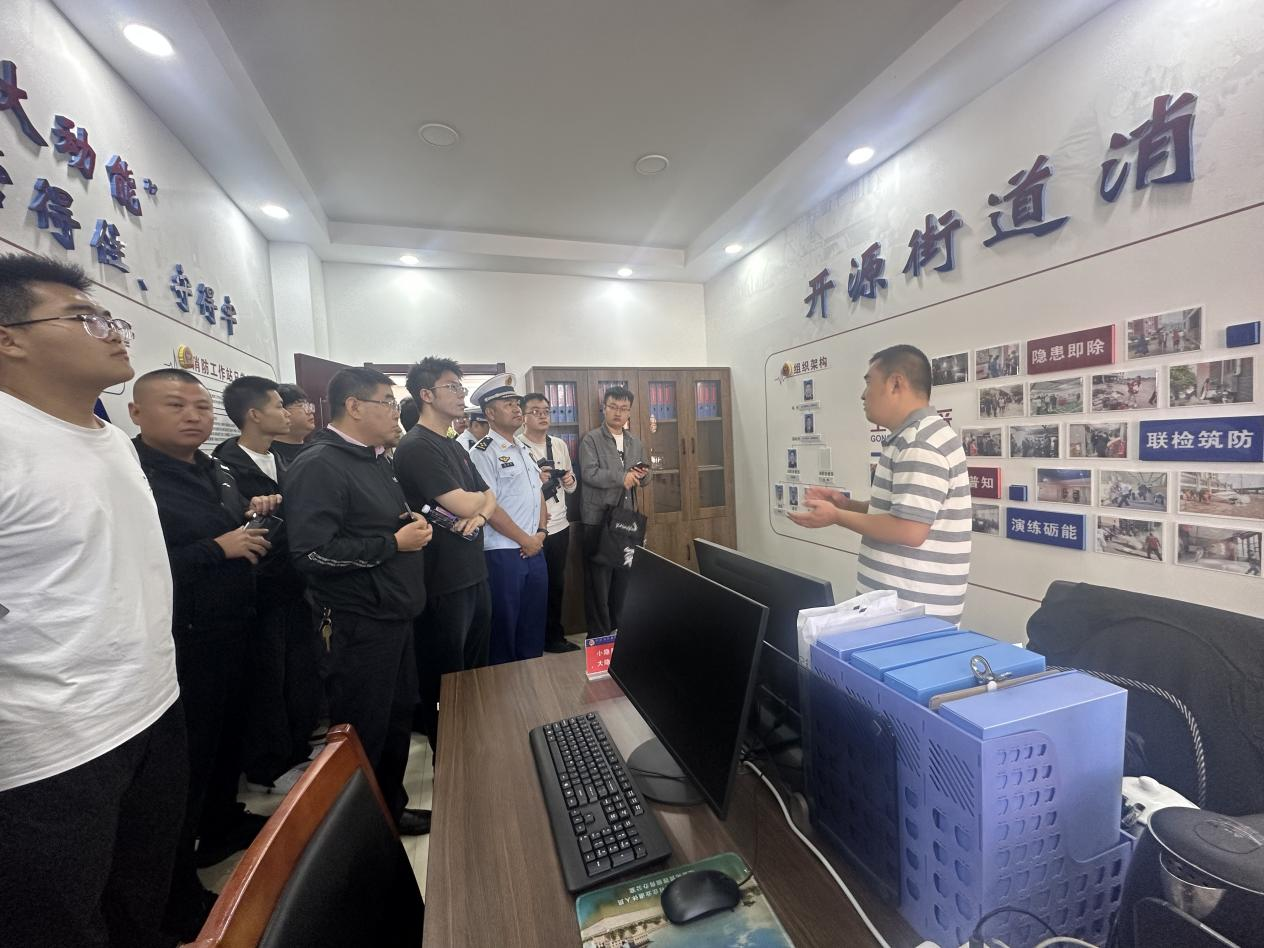 參觀學習中,開源街道消防工作站、民和社區消防工作室負責人通過“現場講解+實地觀摩”的形式,重點圍繞“網格化管理、常態化宣傳、快速化處置”三大核心工作進行經驗分享,詳細介紹了工作站在日常隱患排查、居民消防培訓、微型消防站建設等方面的創新做法與成效。